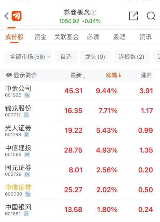 中金公司大幅拉升,盘中一度触及涨停,截至发稿,该股涨超9%,光大证券、中信建投、国元证券等纷纷跟涨。