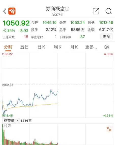 早盘,券商板块整体探底回升,开盘之初券商股集体跳水,信达证券、哈投股份一度跌停,但随后盘中大幅拉升,信达证券跌幅收窄至8.05%,哈投股份跌8.5%。