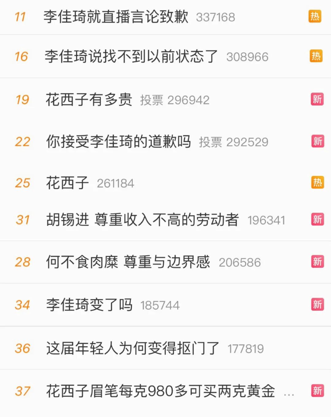 昨夜今晨,“李佳琦”“花西子”相关的数个话题同时冲上微博热搜。