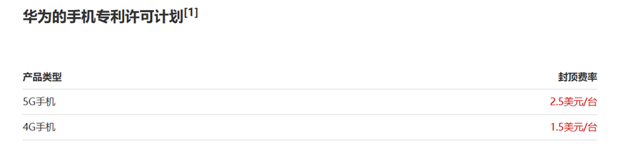 其中,华为对4G和5G手机设置的许可费率上限分别为每台1.5美元和2.5美元,对Wi-Fi 6消费类设备设置的许可费率为每台0.5美元。