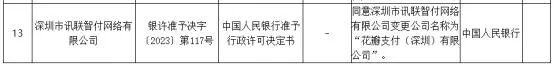 近日,中国人民银行更新非银行支付机构重大事项变更许可信息公示,同意深圳市讯联智付网络有限公司变更公司名称为花瓣支付(深圳)有限公司(简称“花瓣支付”)。