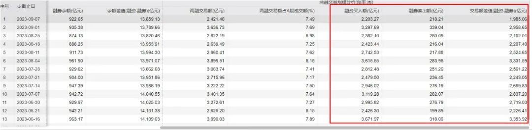 上述头部量化私募人士还表示,从融券卖出额来看,融券也难以对市场产生过大影响。Choice数据显示,截至9月7日,2023年市场整体融券卖出额为218.21亿元,融资买入额则为2203.27亿元,两融净买入额为1985.06元。