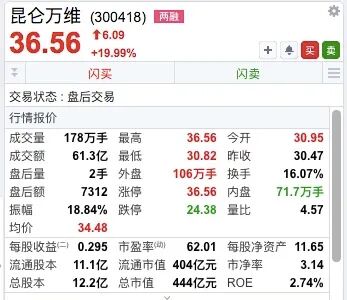昆仑万维20%幅度涨停