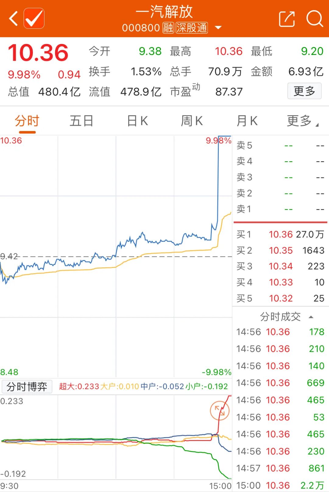 智界S7新车的发布以及余承东的表态,引发长安汽车、赛力斯、北汽蓝谷、江淮汽车等华为车企“朋友圈”公司股价大幅上涨。一汽解放收盘前快速拉升至涨停。