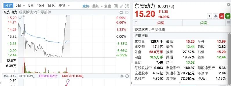 长安汽车与华为“牵手”掀起相关板块涨停潮,作为长安汽车“好兄弟”的东安动力也迎来股价高光时刻。今日,东安动力上演“地天板”,录得7连板。