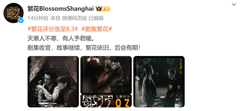 当日晚间,王家卫发微博表示“十年一瞬,江湖再见。”网友们纷纷评论:“谢谢王家卫导演,创造了这么好的一部作品。”