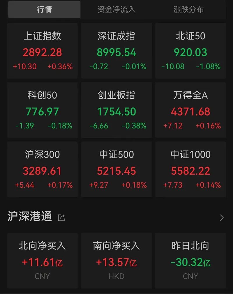 周一,A股三大指数盘中一度集体翻红,随后走势分化。截至午间收盘,上证指数涨0.36%,深证成指微跌0.01%,创业板指跌0.38%。北向资金半日净买入11.61亿元。