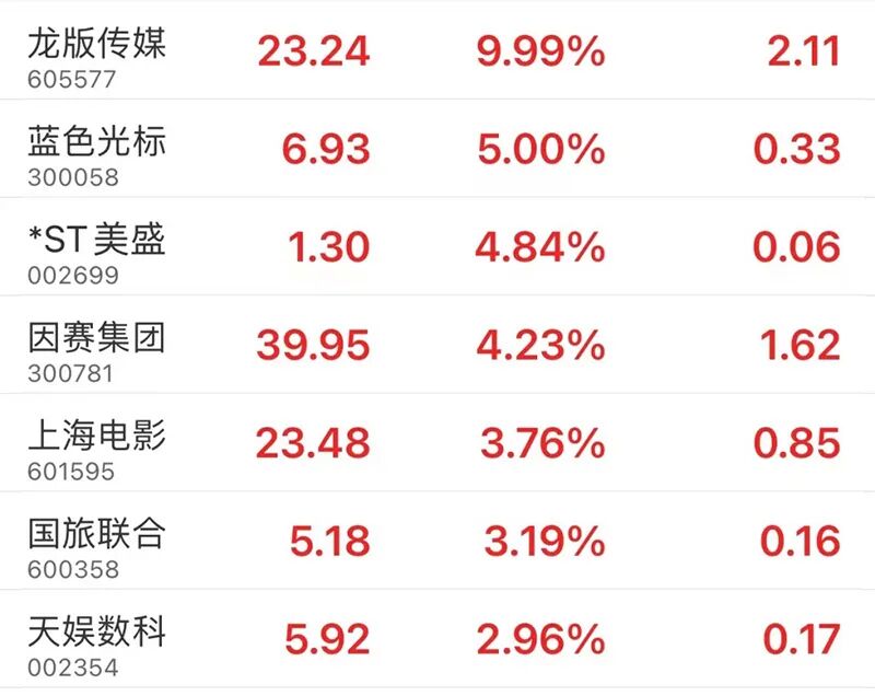 今日早盘,抖音概念股异动拉升。截至午间收盘,广博股份、龙版传媒涨停,天娱数科、引力传媒、天创时尚等涨幅居前。