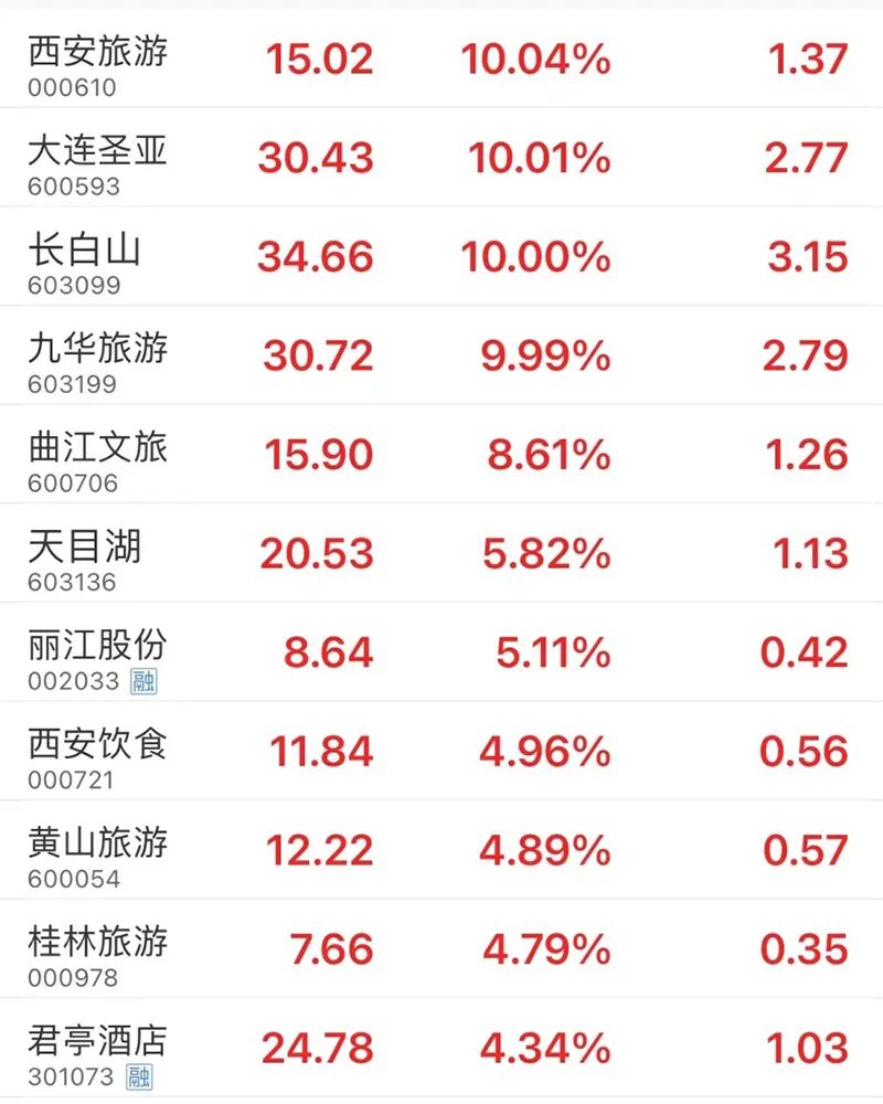 连日来,在多个网络平台的热榜上有不少文旅相关词条。在文旅热的带动下,旅游酒店板块今日开盘再度大涨,长白山走出10天8板行情。截至午间收盘,西安旅游、大连圣亚、长白山、九华旅游涨停,曲江文旅、天目湖、丽江股份、西安饮食等纷纷跟涨。