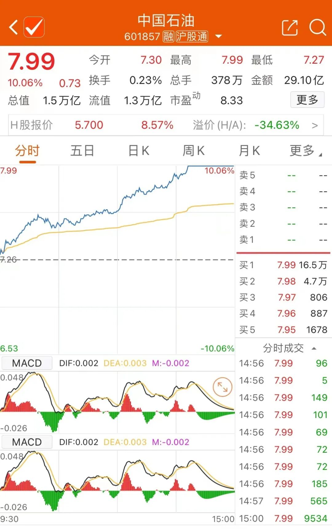 1月25日,中国石油涨停,为2015年7月以来首次,成交额超29亿元。