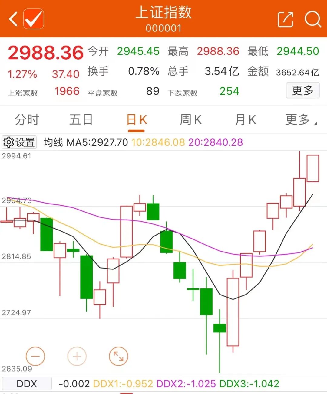 龙年开年以来,沪指连续上涨,延续了春节前的上涨势头。今日,沪指再度震荡走强,收盘斩获七连阳。截至收盘,上证指数报2988.36点,直逼3000点整数关口。