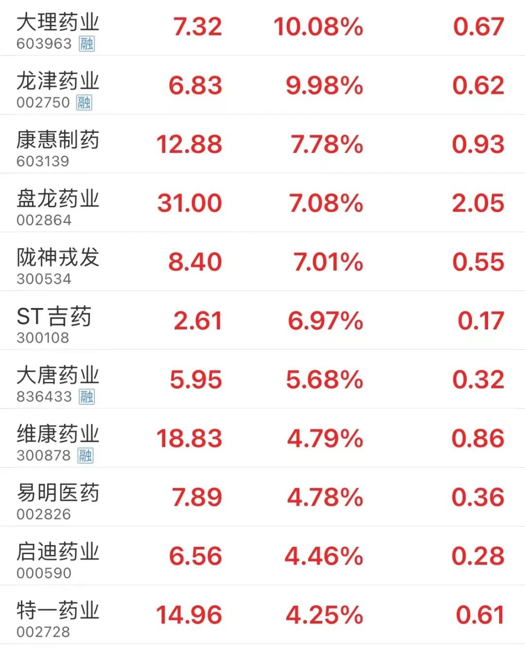 中药股盘中走势活跃,大理药业、龙津药业涨停,康惠制药、盘龙药业、陇神戎发、大唐药业等涨超5%。