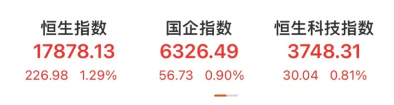 今日早盘,港股市场继续全面爆发,恒生科技指数一度涨超2%。截至午间收盘,恒生指数涨1.29%,报17878.13点。恒生国企指数涨0.9%,报6326.49点。恒生科技指数涨0.81%,报3748.31点。恒生指数从1月低点反弹约20%,迈向技术性牛市。恒生科技指数已抹去年初至今的跌幅。