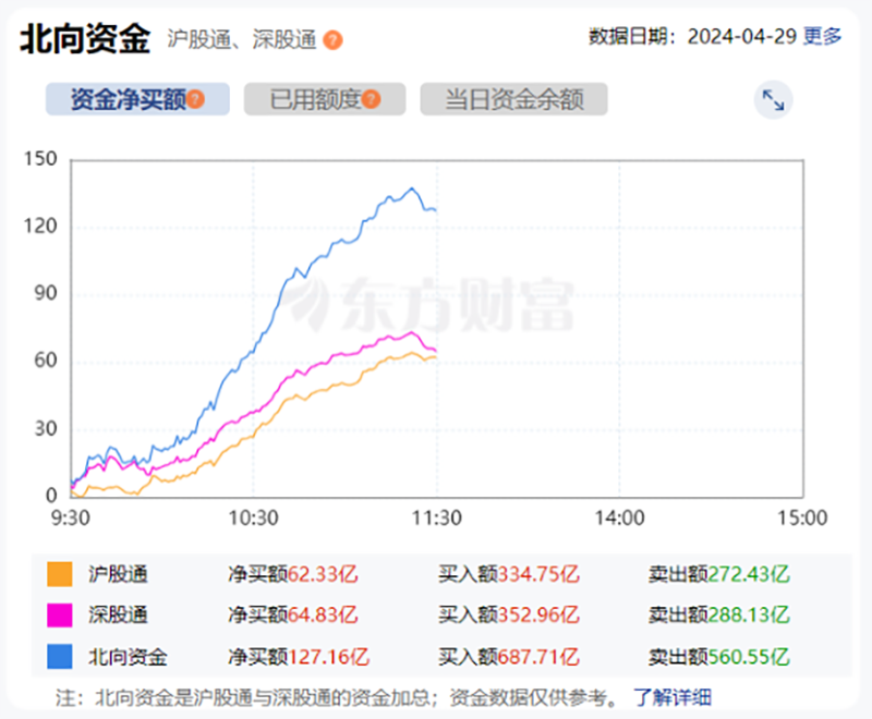 北向资金早盘流向 截至上午11时