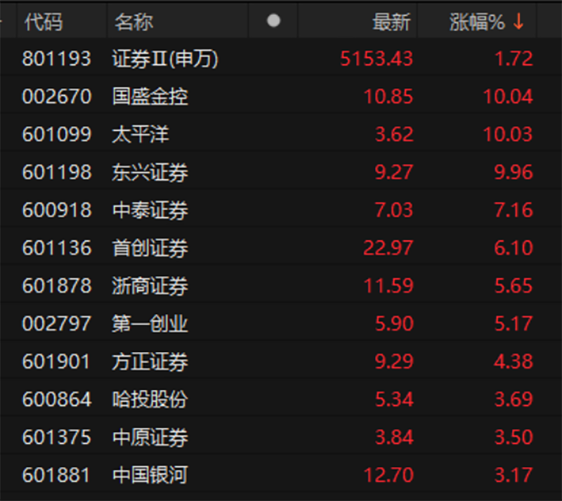 券商板块早盘涨幅排名
