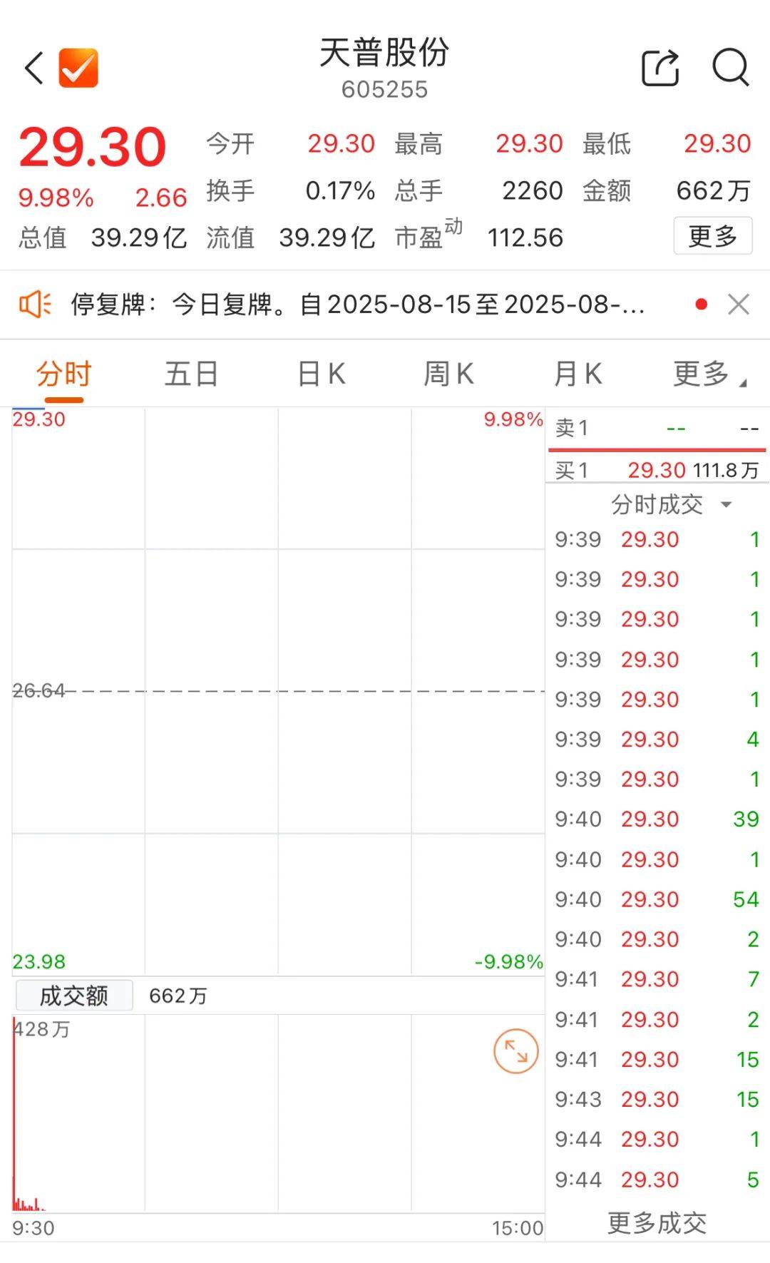 8月21日晚间,天普股份公告称,公司实控人尤建义及其控制的天普控股、天昕贸易合计将天普股份10.75%的股份转让给中昊芯英(杭州)科技有限公司(简称“中昊芯英”)。上市公司股票于8月22日复牌。8月22日早盘,天普股份(605255)开盘涨停,报29.30元/股。