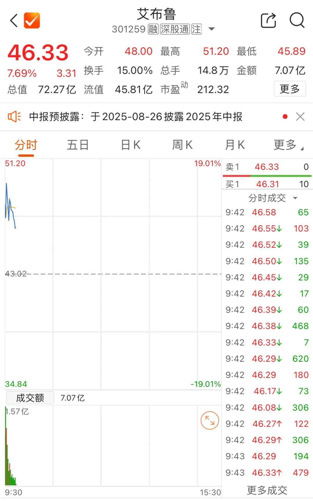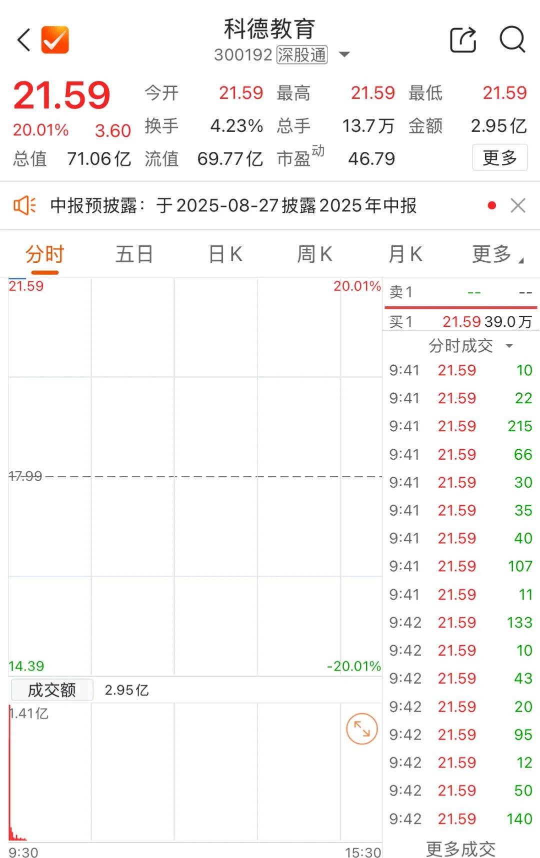 值得注意的是,参股中昊芯英的科德教育、艾布鲁开盘行情异动。科德教育(300192)“20cm”涨停,艾布鲁开盘大涨,随后股价调整,截至发稿仍涨7.69%。