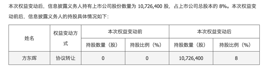 据公告披露,方东晖是家住杭州市上城区的一位“80后”,其还持有罗欣药业、晨丰科技两家上市公司部分股权,看似一个职业投资人。