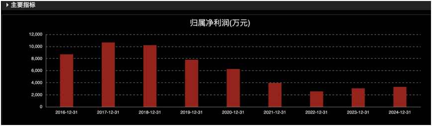 2025年第一季度,公司业绩延续颓势,营业收入仅为8116.4万元,同比减少9.36%;归母净利润为872.54万元,同比减少10.32%;扣非归母净利润744.12万元,同比减少18.58%。