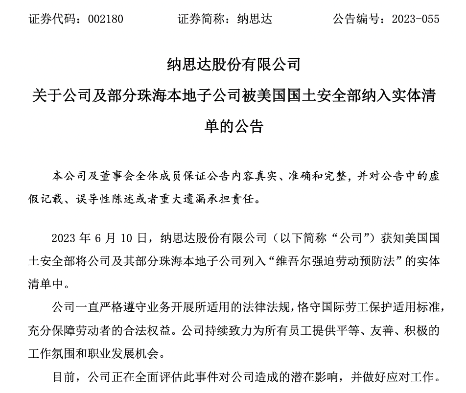 6月11日晚间,纳思达公告称,6月10日,公司获知美国国土安全部将公司及其部分珠海本地子公司列入实体清单中。目前,公司正在全面评估此事件对公司造成的潜在影响,并做好应对工作。