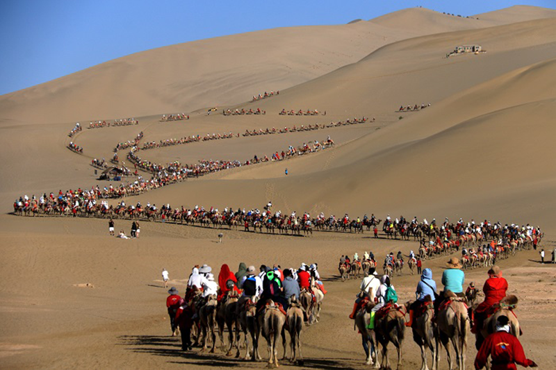 在敦煌,骆驼也要排长队。无论是跟着课本去打卡中国的名山大川、人文古迹,亦或者去全国各地博物馆参观“国宝”文物,都成为亲子客群的热门选择。目的地来看,北京、西安、南京、洛阳、敦煌等人文历史景观资源丰富的目的地人气火爆,博物馆、石窟寺、热门景区门票一票难求。