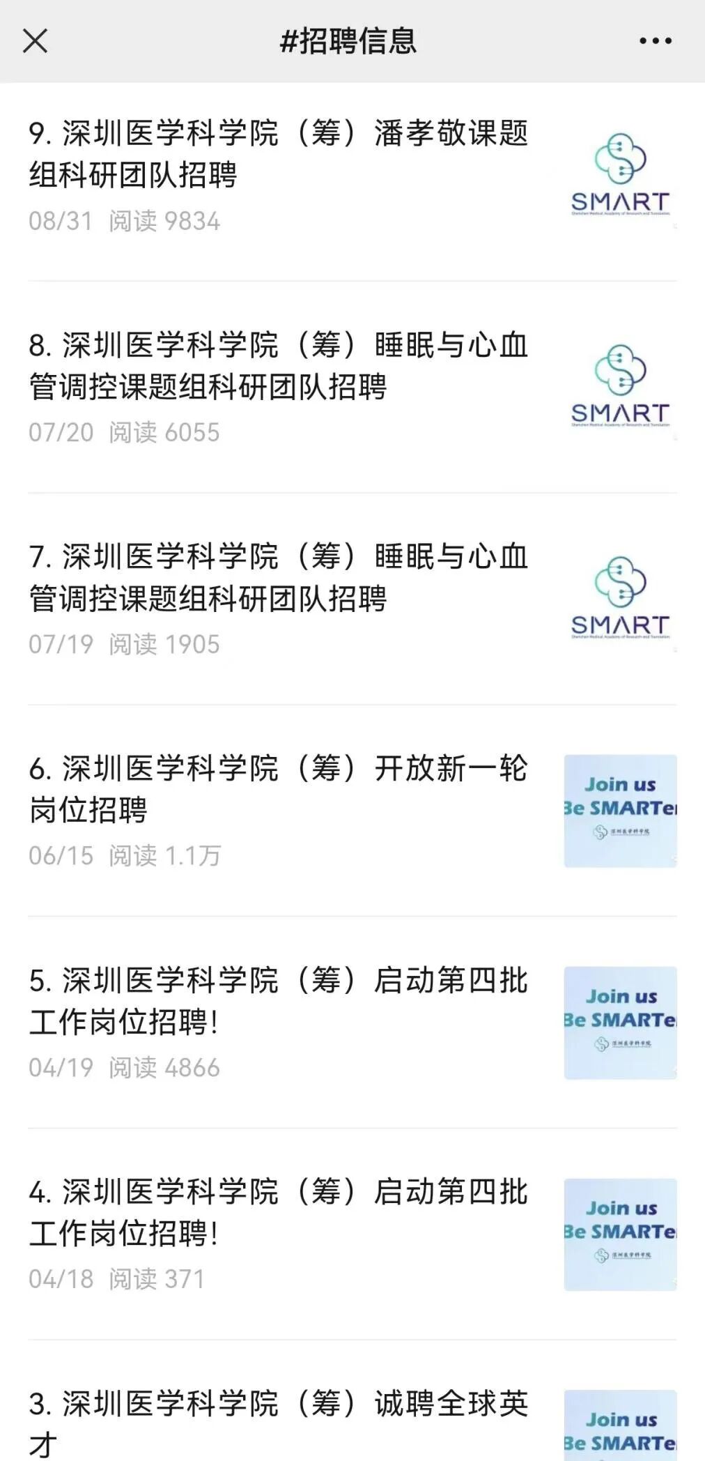 同期,深圳医学科学院启动多批工作岗位招聘工作,多个课题组科研团队也陆续开始“招兵买马”。