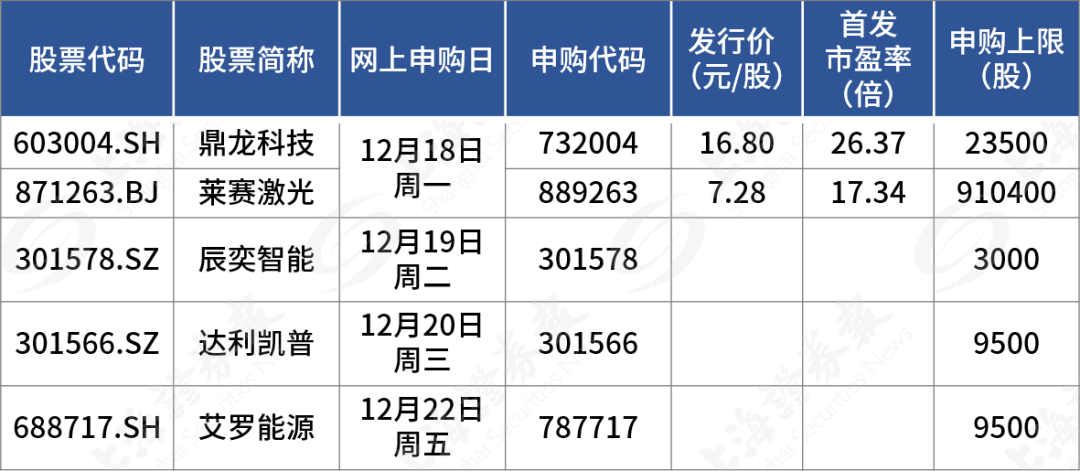 据目前安排,若无变化,下周(12月18日至22日)有5只新股可申购,包括科创板1只、创业板2只、北交所1只和沪市主板1只。