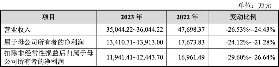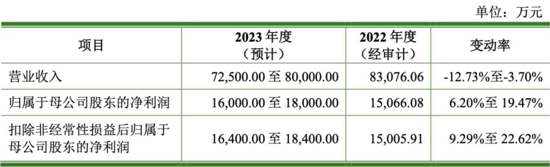 达利凯普招股书称,预计2023年全年实现净利润1.34亿元至1.39亿元,同比变动-24.12%至-21.28%。