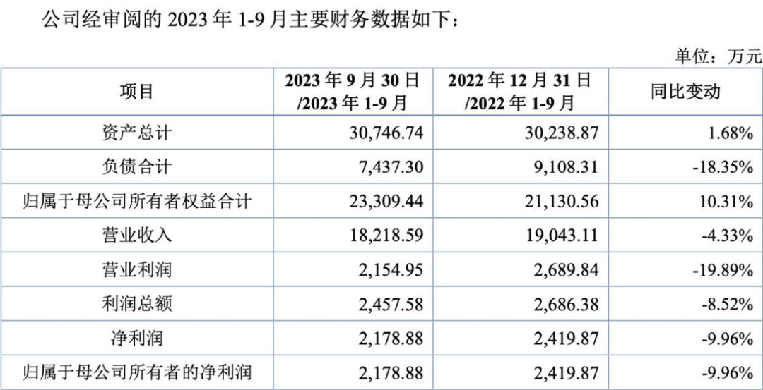 莱赛激光招股书称,公司2023年前三季度实现净利润2178.88万元,同比变动-9.96%。