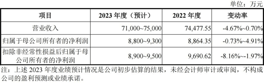 辰奕智能招股书称,预计2023年全年实现净利润8800万元至9300万元,同比变动-0.73%至4.91%。