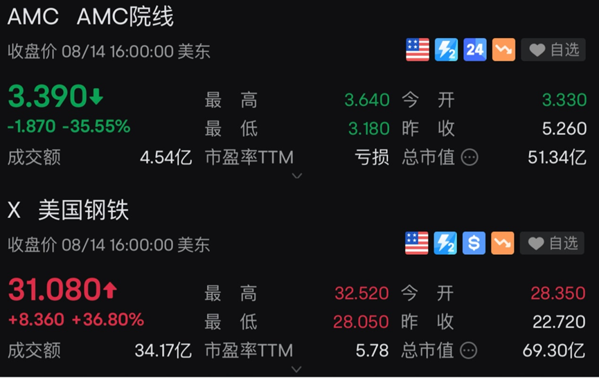 此外,美国钢铁涨超36%,美国私人控股公司Esmark提议,以每股35美元现金收购美国钢铁;AMC院线跌超35%,此前法院批准AMC修订后的和解协议。