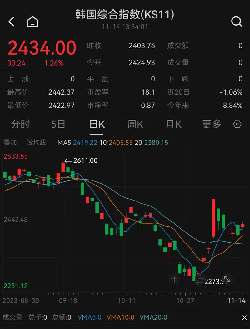 在泰国之前,11月5日,韩国金融服务委员已发布声明称,将从下周一(11月6日)暂时禁止股票卖空至2024年6月,以便监管机构改进规则和系统。禁令将适用于KOSPI主板、KOSDAQ和KONEX市场的所有上市股票。这里的卖空行为指的也是“裸卖空”,该操作在韩国市场是被禁止的。