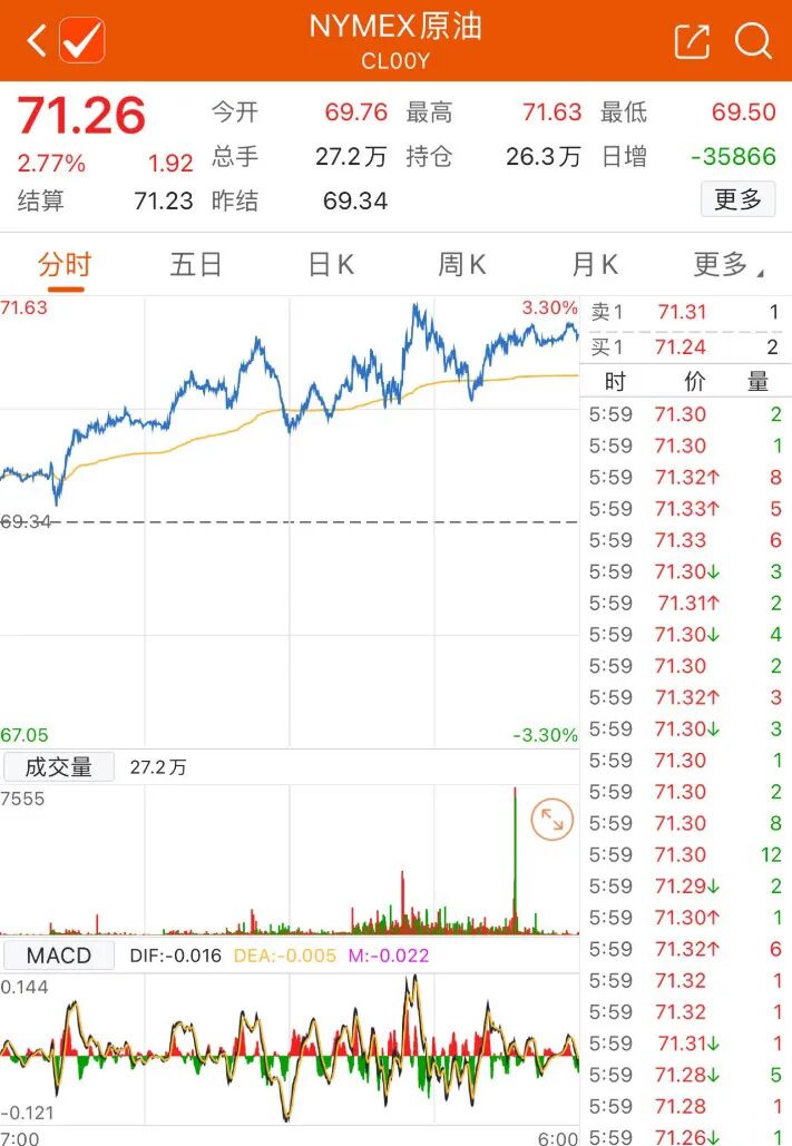 此外,国际原油价格隔夜出现大幅反弹,WTI原油、布伦特油盘中最高涨幅超过3%,最终分别站稳71美元/吨和75美元/吨关口。不过,业内人士普遍认为,国际油价仍存继续探底的可能。