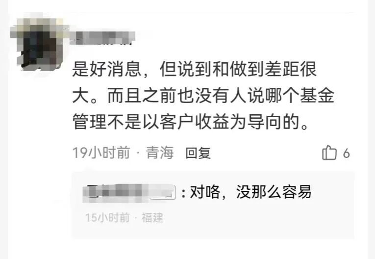 不少基民在互联网社区上也留言道:“是好消息,要说到做到才是硬道理。”