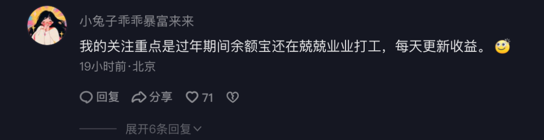 网友感叹:余额宝过年还在给我“打工”,可以安心过年了。