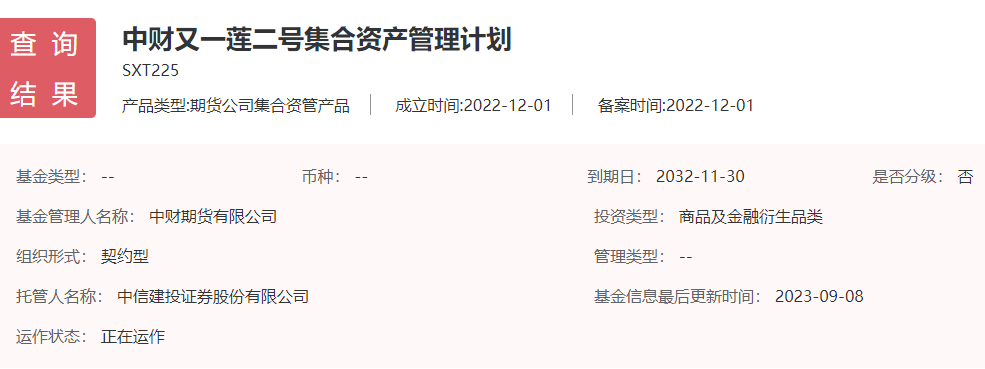 根据中基协产品公示,“中财又一莲二号”产品类型为期货公司集合资管产品,基金管理人为中财期货有限公司,投资类型为商品及金融衍生品类。根据第三方机构,“中财又一莲二号”投资策略为主观CTA,成立以来较南华商品指数取得了约370%的超额收益。
