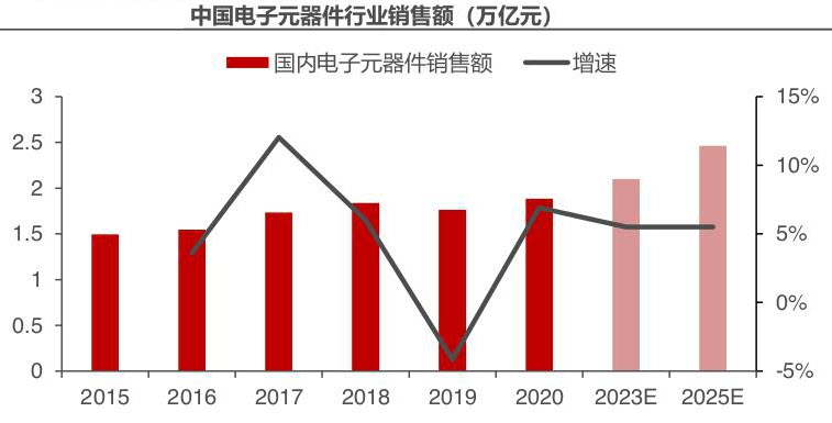 如今我国的电子元器件制造业已经具备了较高的技术水平和生产能力,许多门类的电子元器件产量已稳居全球第一位。据机构预测2025年我国电子元器件行业销售额有望超过2.5万亿元。