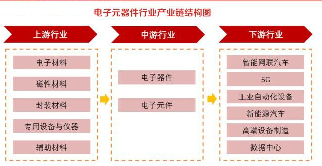 从产业链来看,上游包括电子材料、磁性材料、封装材料、辅助材料、专用设备与仪器等;中游为各类电子器件和电子元件;下游的应用领域有5G、工业互联网、数据中心、新能源汽车、智能网联汽车、工业自动化设备及高端装备制造等。