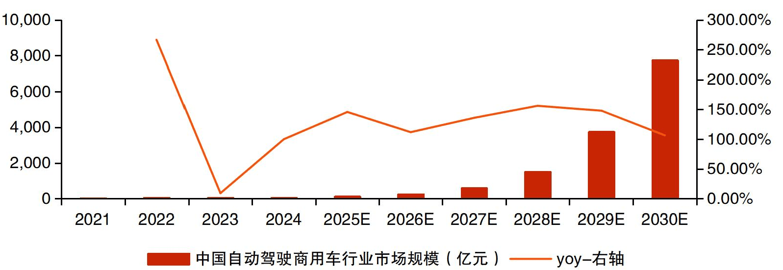 近日工信部等八部门发布关于《汽车行业稳增长工作方案(2025—2026年)》的通知,明确提出推进“有条件批准L3级车型生产准入”。受此消息影响,自动驾驶领域有望迎来积极催化,自动驾驶商用车市场规模也将实现迅速增长。