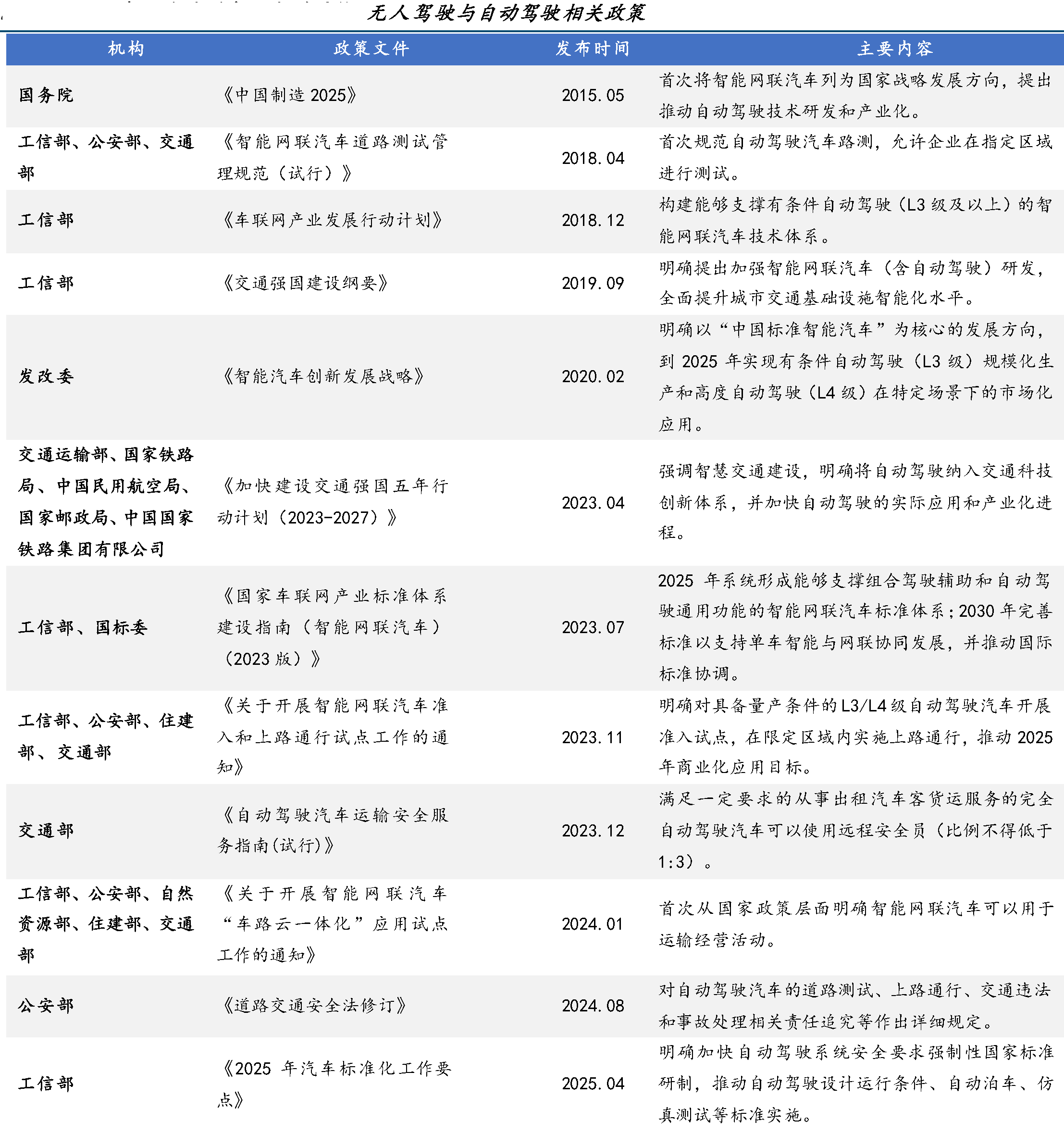从政策层面看,国家在年初同步推进智能网联汽车准入试点工作,通过"立法+产业政策"双轮驱动加速城市NOA商业化进程。《2025年汽车标准化工作要点》将自动驾驶安全标准升级为强制性国标,推动自动驾驶设计运行条件、自动泊车、仿真测试等标准实施。