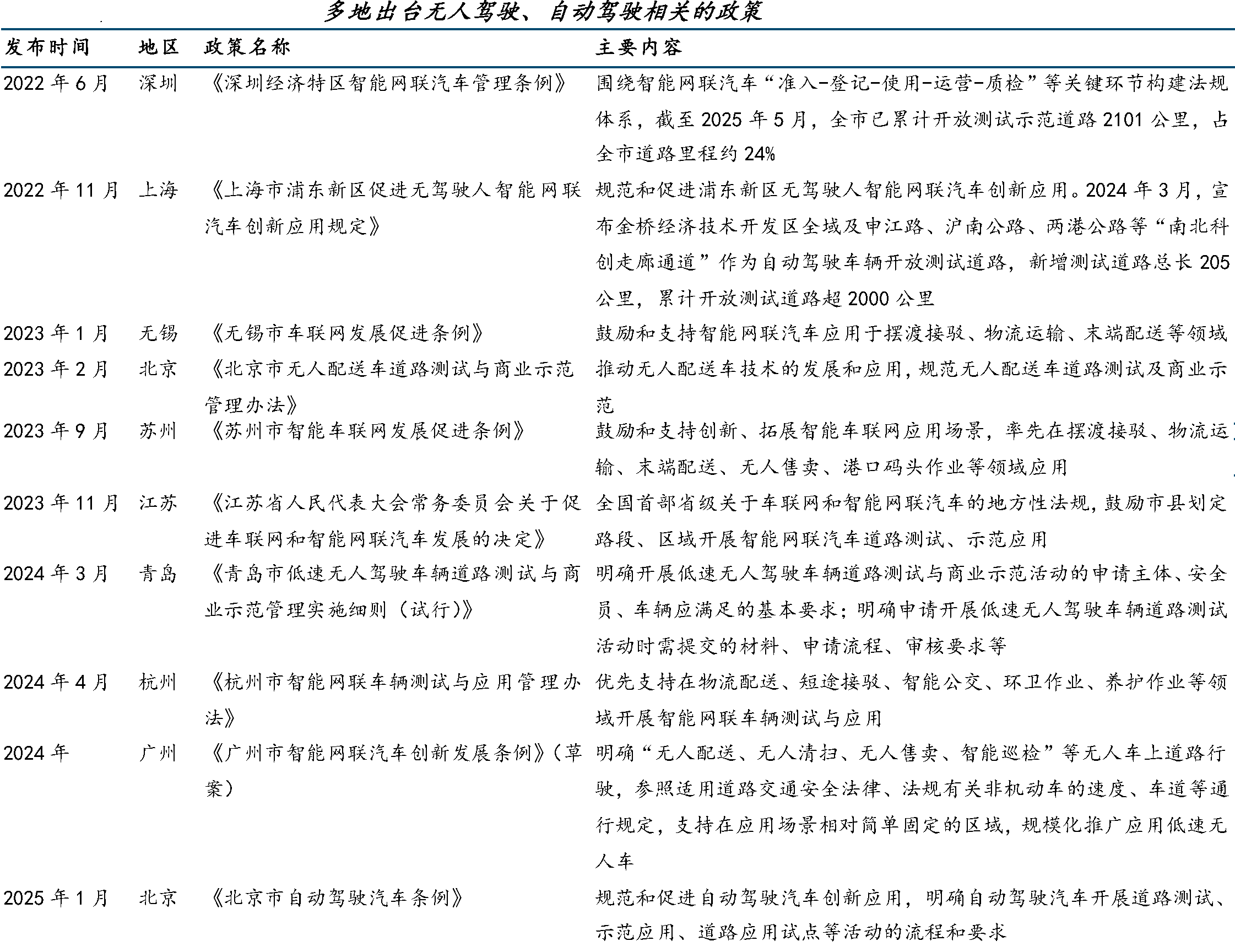 此外,近几年全国多地也不断推出自动驾驶相关条例。以北京为例,《北京市自动驾驶汽车条例》指出,规范和促进自动驾驶汽车创新应用,明确自动驾驶汽车开展道路测试、示范应用、道路应用试点等活动的流程和要求。