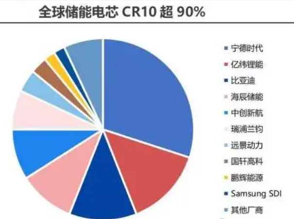 2024年全球储能电芯总出货量前五大企业为宁德时代、亿纬锂能、比亚迪、海辰储能、中创新航,行业CR10达90.9%,CR3超50%。其中宁德时代在行业内深耕多年,市场优势明显稳居行业龙头;亿纬锂能在2024年超越比亚迪位列第二,并且领先优势显著;而韩系厂商三星和LG位次则有所下降。