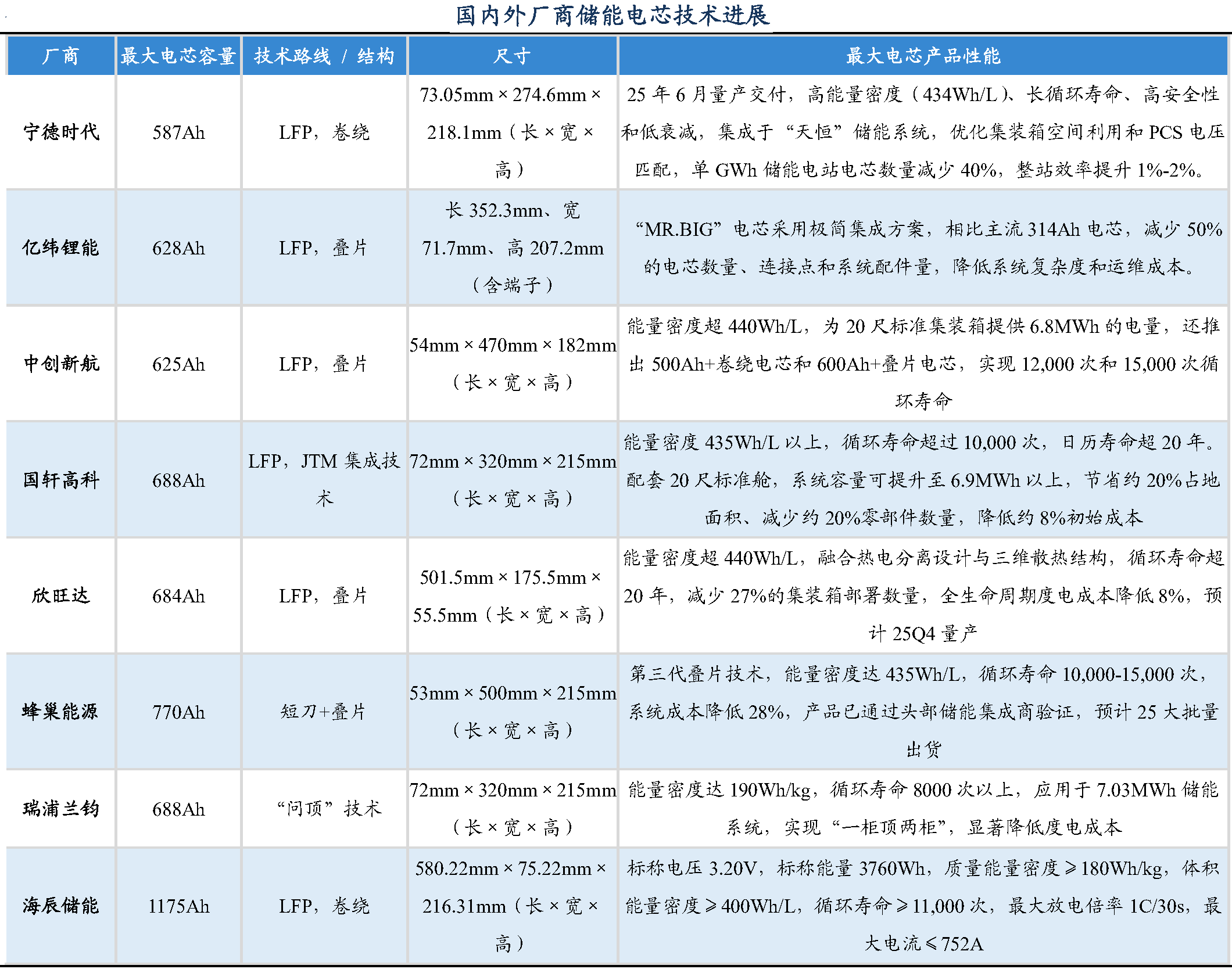 当前行业已进入技术驱动与全球化竞争的新阶段,核心竞争力体现在大容量电芯的研发量产能力、全球化产能布局的广度与深度、以及对钠电等下一代技术的前瞻性储备上;拥有领先技术、稳定海外大单及全链条成本控制能力的企业正持续扩大优势,而细分领域的差异化技术路线和特定市场深耕也为部分企业提供了生存空间;未来竞争焦点将集中于超长寿命电芯技术、海外本地化生产合规性以及极端场景下的安全可靠性验证。